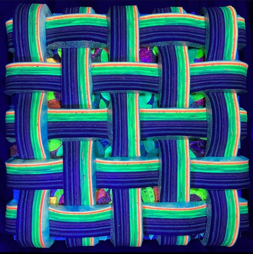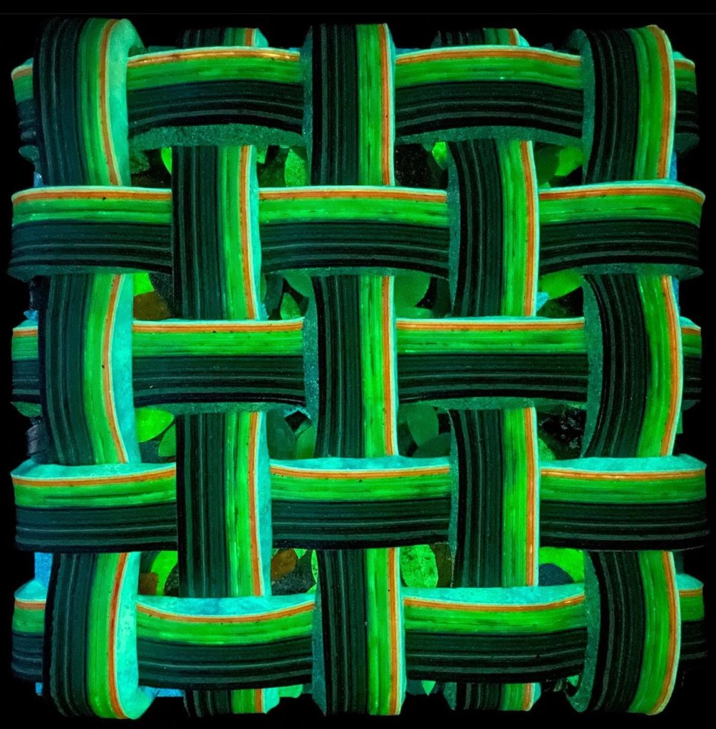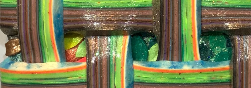 The inspiration behind this artwork emerged from the simplest of natural wonders – a tree. In nature, a tree’s formidable strength is rooted in its trunk, and I chose to emphasize this in the composition. The trunk, a central element of the piece, consists of a significant portion of the threads. I often advise my students to find a tree, gaze upon its bark, and truly see what’s there, much as I’ve done countless times. At first glance, many might perceive only shades of brown, but upon closer and more prolonged inspection, a myriad of colors and textures reveal themselves.