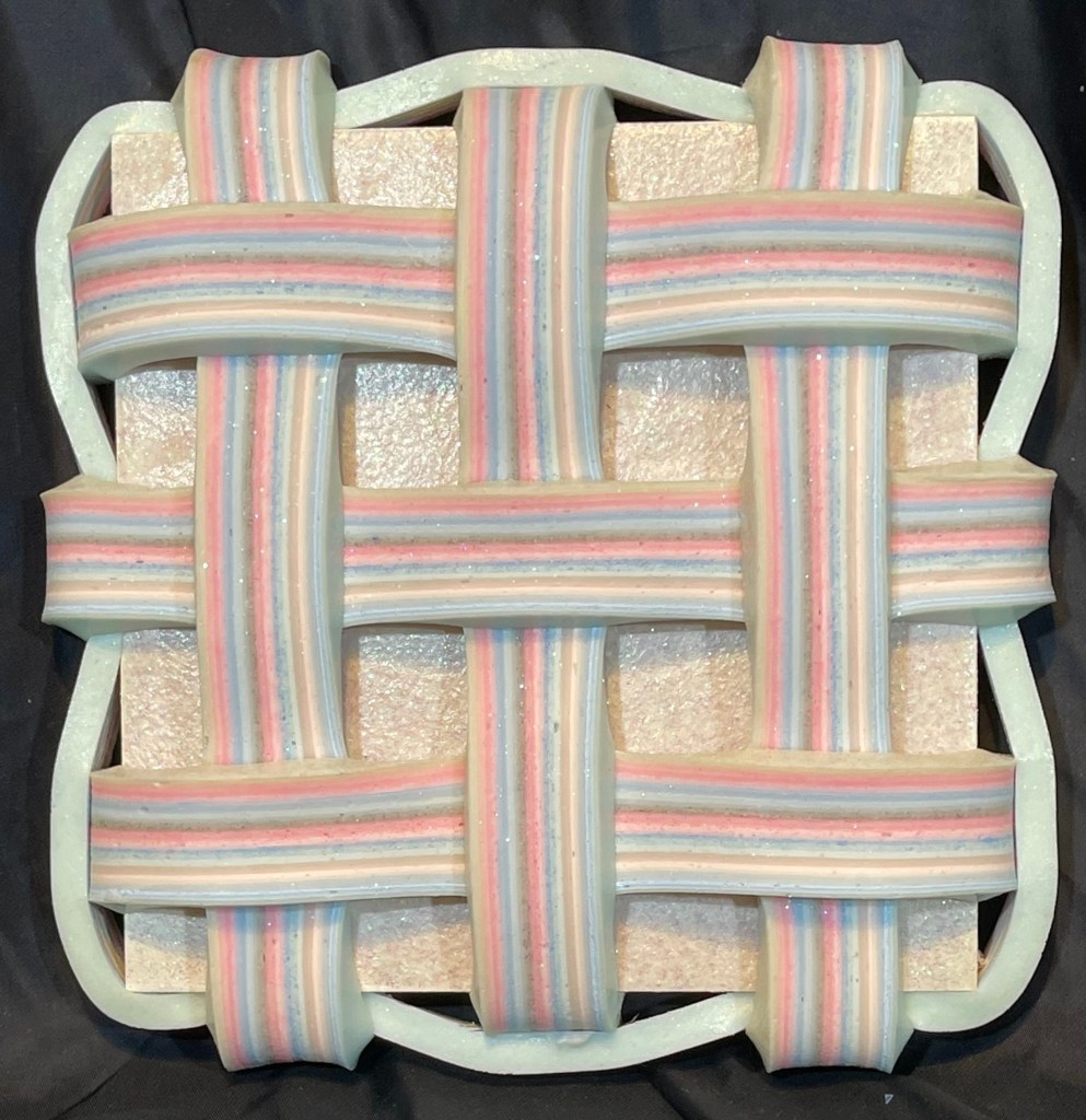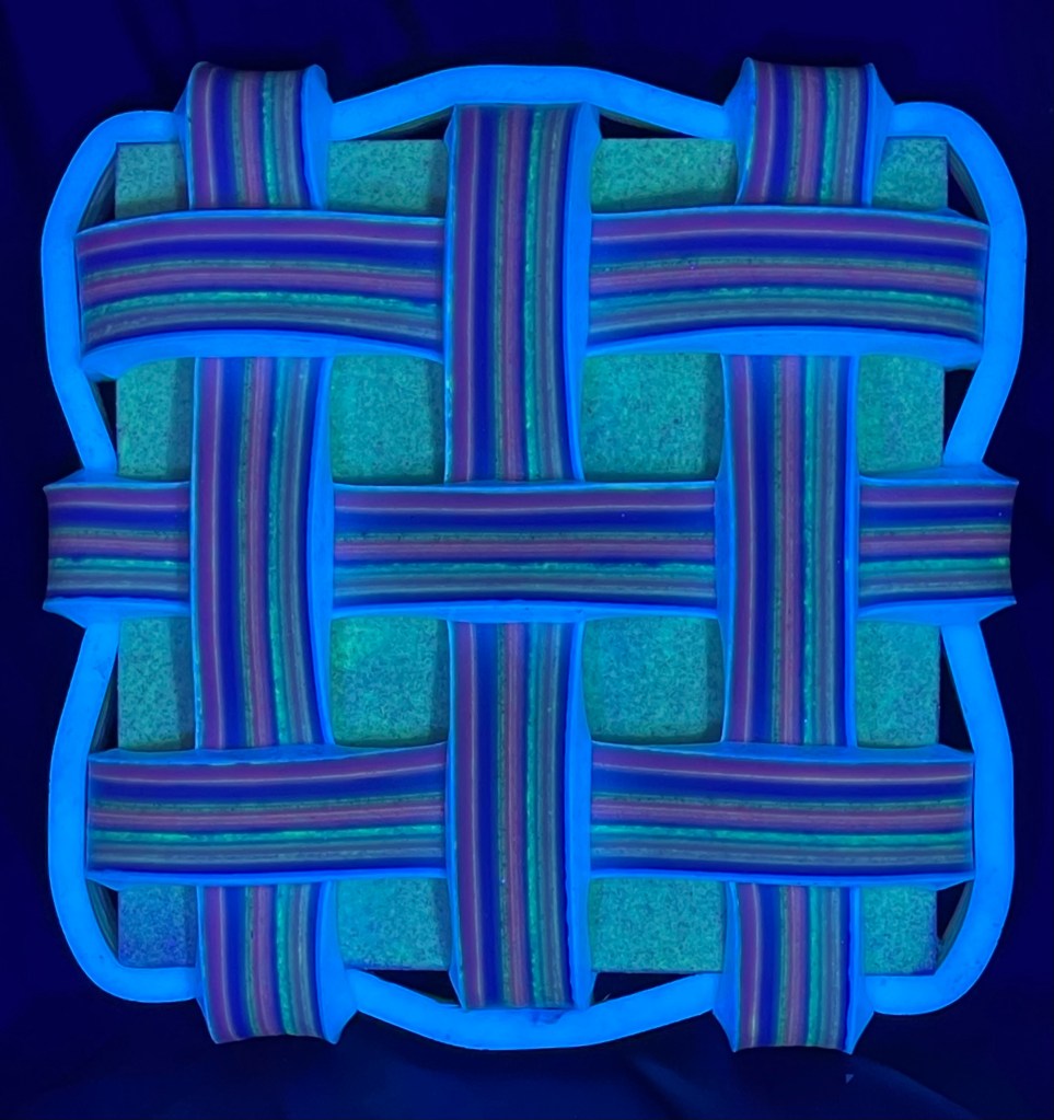 Texture, pattern, and depth emerge through careful arrangement and craftsmanship. The woven surface becomes a site of tension and harmony, where light shifts across layered paint and shadow pools in the recesses. This balance between structure and spontaneity guides my process, inviting reflection and discovery.